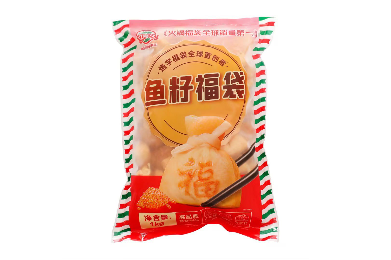 產(chǎn)品特性:優(yōu)質(zhì)豆皮包裹金黃飽滿魚籽,意頭十足,形狀如袋子故稱福袋,口感滑嫩彈牙,鮮香濃郁!